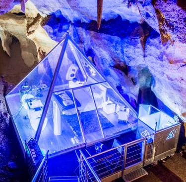 Creusée dans les calcaires du sommet du Jurassique, la grotte de renom que vous allez maintenant visiter n'est qu'une branche d'un vaste ensemble souterrain couvrant une trentaine de kilomètres.